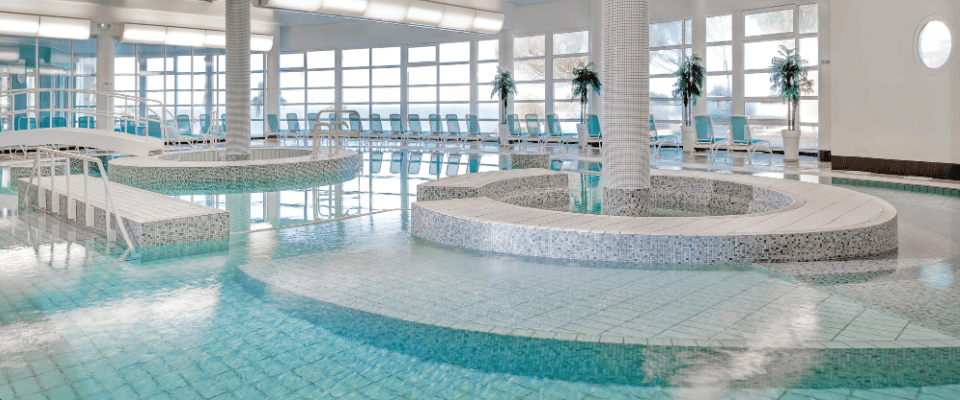 ESPACE FORME : Parcours aquatique de 350m² en eau de mer chauffée à 33°C baigné de lumière naturelle, avec lits à bulle, jacuzzi, jet streams, douches en cascade, bains à turbulences…, un bassin de natation d'eau de mer, une salle de musculation climatisée, une salle de fitness, un hammam à l'eucalyptus, un sauna et plus de 50 cours collectifs (en salle et en piscine) par semaine.