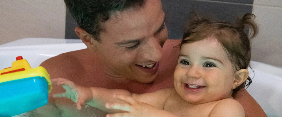 Bain hydromassant, massage d'éveil pour bébé, autant de moments à partager pour savourer le plaisir d'être ensemble.